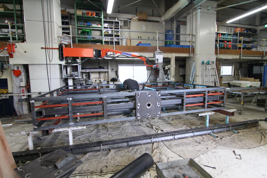 屋内にて鉄骨を溶接し組み上げます。