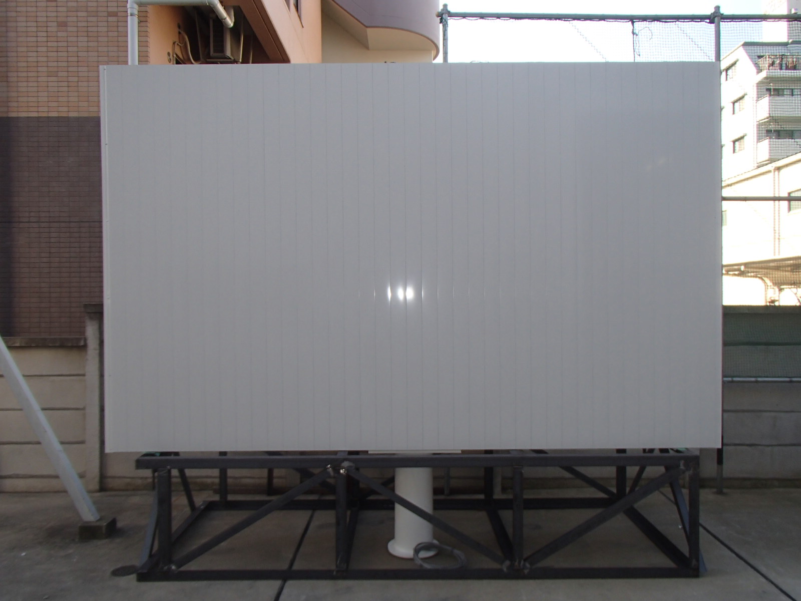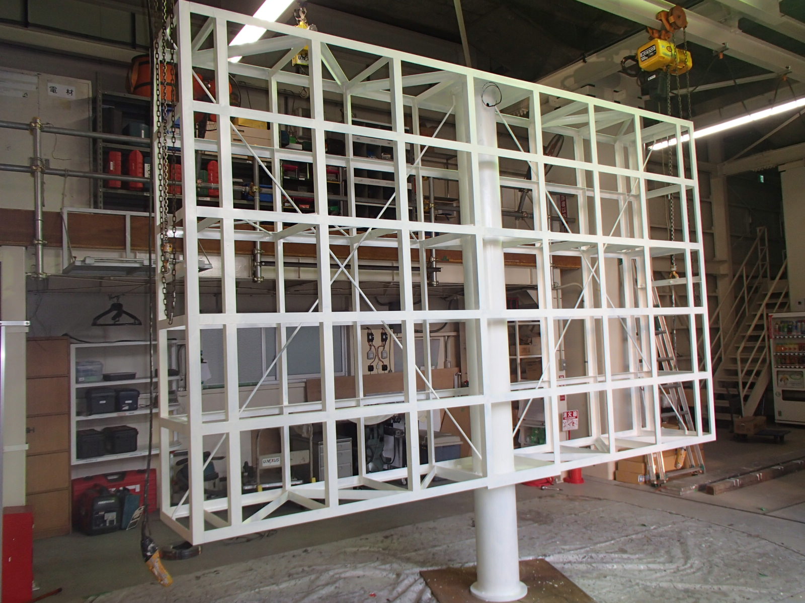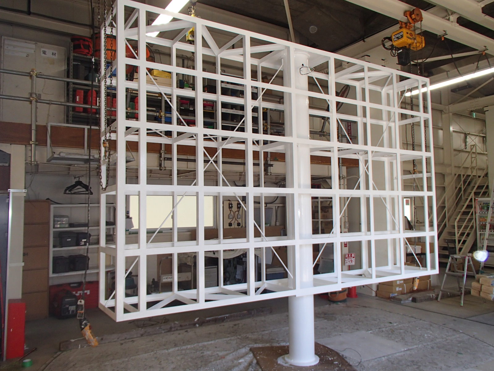 看板本体の取付です、これからクレーン車で吊り上ます