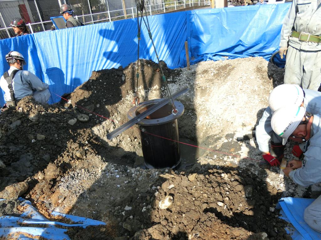 鋼管ぐいの埋め込み作業