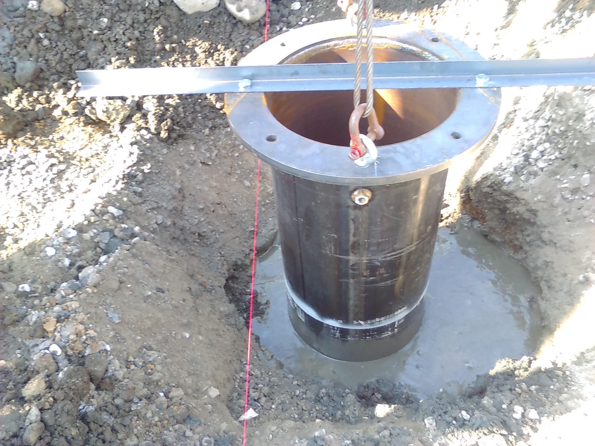 鋼管を埋め込みセメントで固めます。